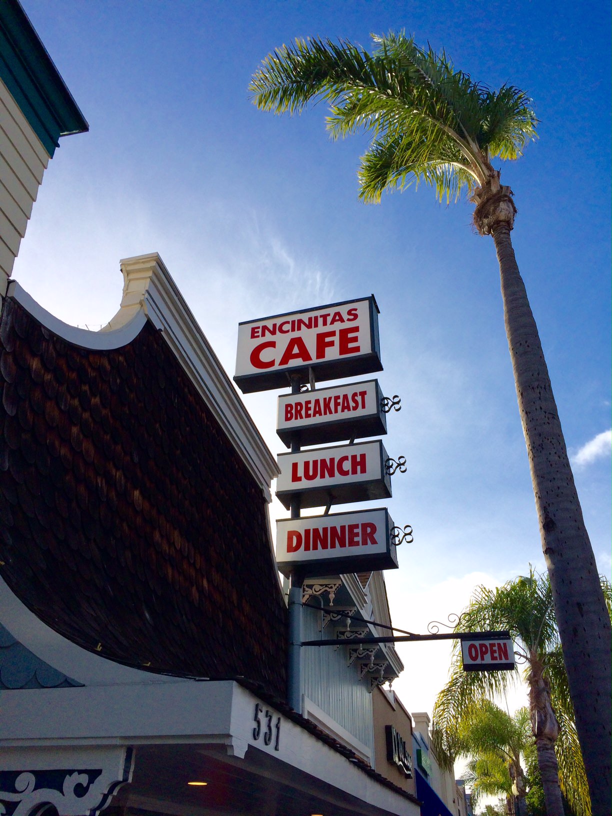 それからDanと二人でEncinitasのダウンタウン戻り朝食をとることにする。雨上がりで週末は渋滞がヘビーになる。クラシックなカフェでクラシックなブレックファースト。