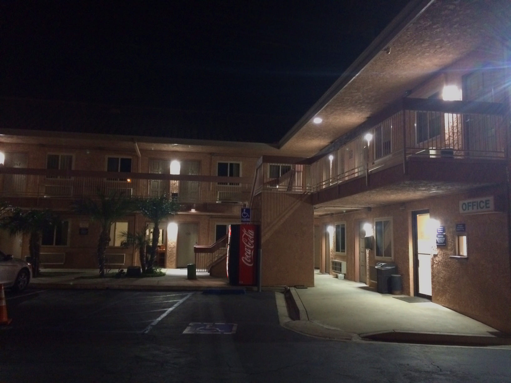 モテルにチェックインする前に夕食の買い出しをする。初めてのモテル。しかし人懐こいフロントマンに心がなごむ。