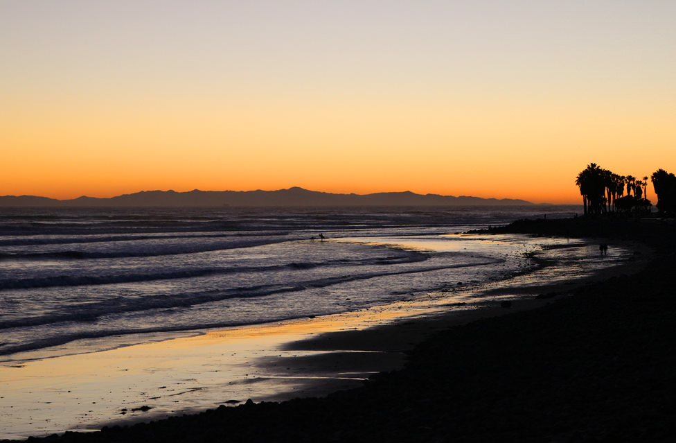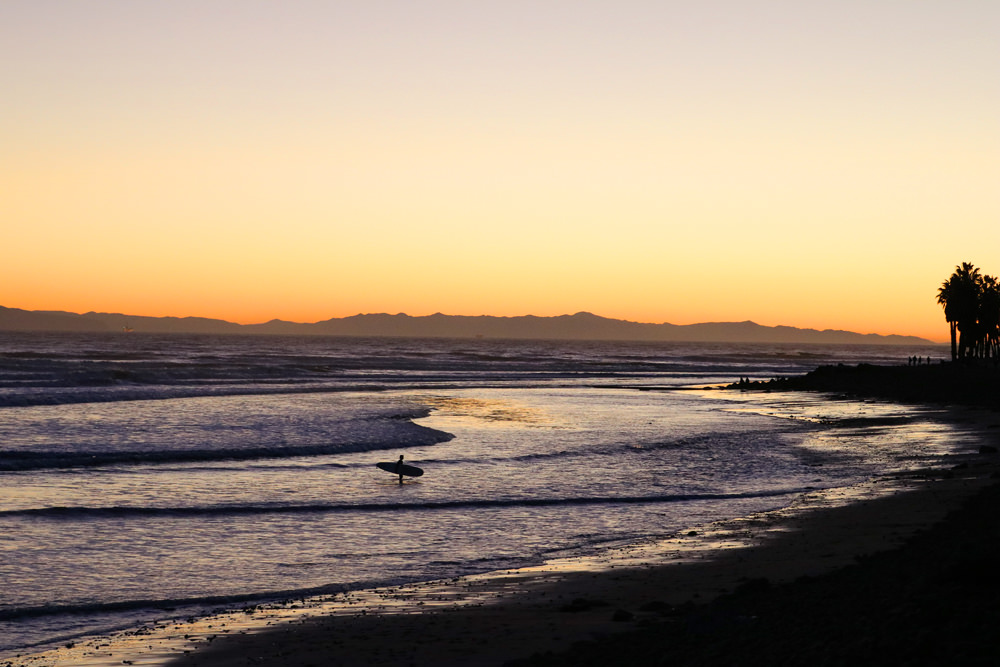 あっと言う間に夕闇が押し寄せる。サーファー達も急いで海から上がる。