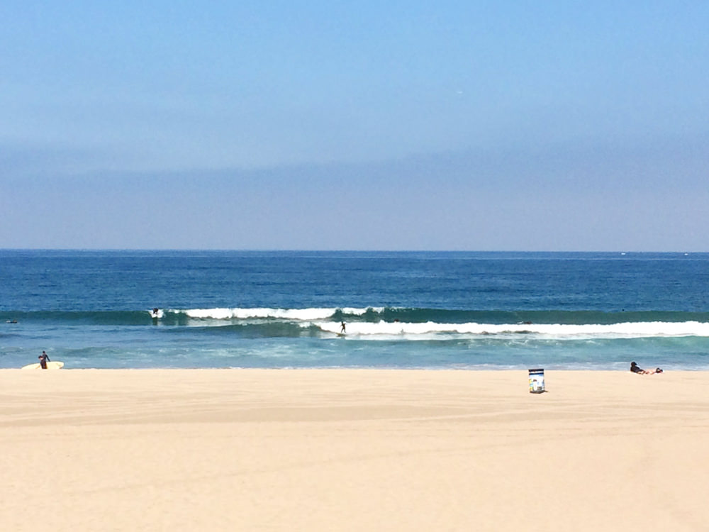 9’10"を取り出し、パドルアウト。海の中はサーファーが多く、カリフォルニアの夏を感じる。ここの波はクセがある(笑) 所々でカレントが出来て流れもできる。ランドマークとまわりのサーファーをチェックして自分とポジションをマメに変える。そうしないとカレントによって自然とサーファーがかたまってしまう。