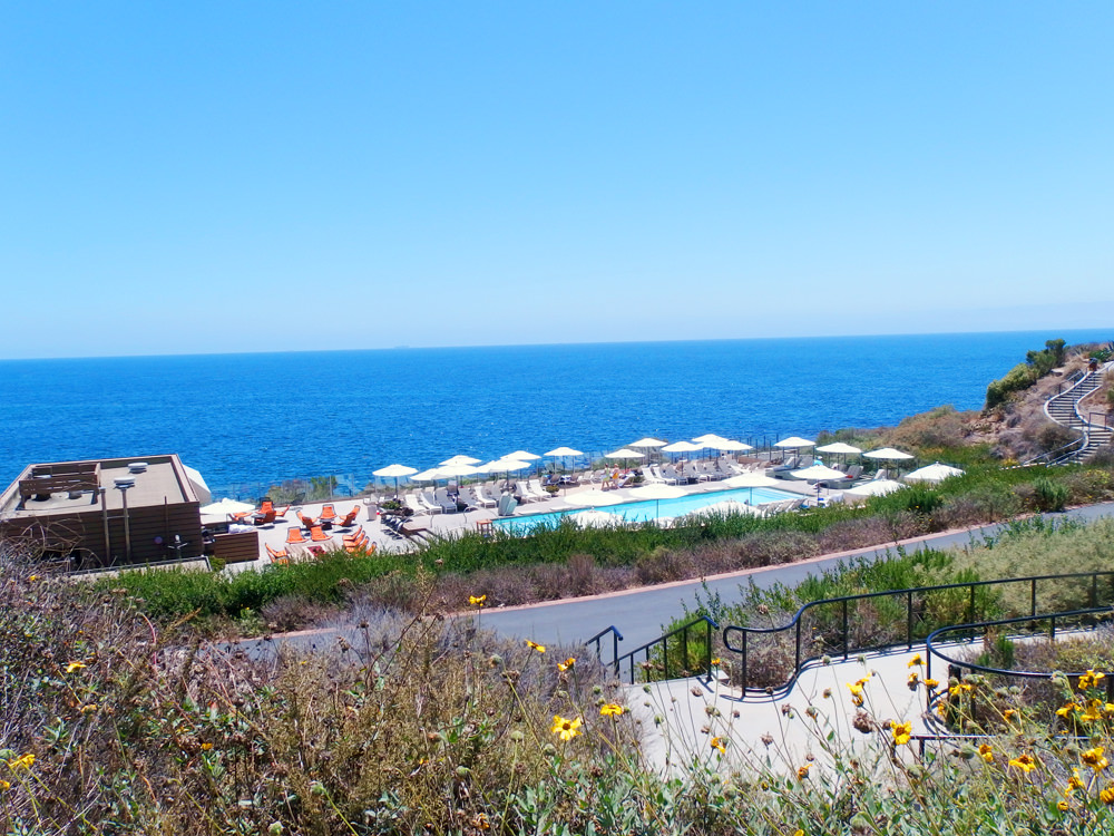 そしてKAZさんは僕をパロスヴェルデスの素晴らしい風景の場所へ連れて行ってくれた。そこはホテルの敷地内で、その周りにはゴルフコースやコンドミ二アムも点在する風光明媚なところだった。二人でゆっくりと外周を歩くと眼下には海原が広がり、細かく波が岩に砕けている。ところどころにきれいな花が咲き、ホテルの敷地にはプールがあり、たくさんの白いパラソルが咲き乱れる。
