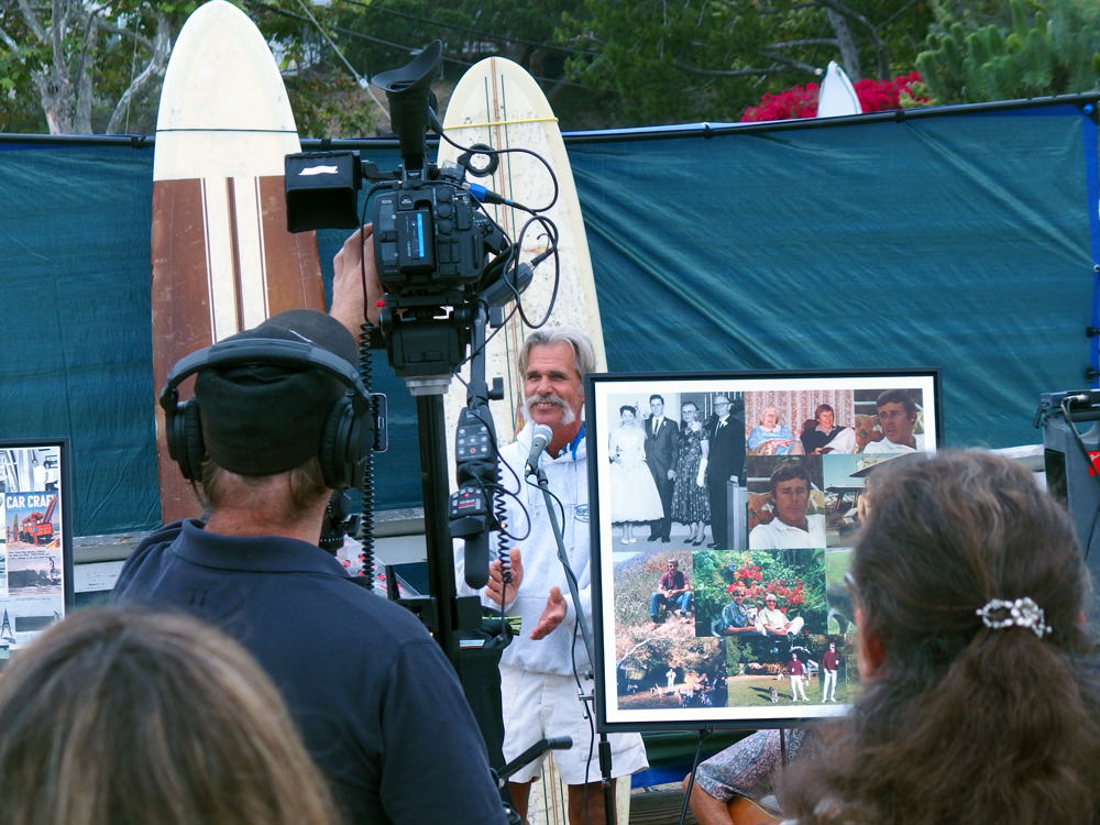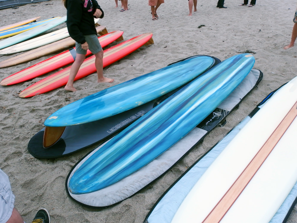 会場の中央では終始カメラクルーが撮影して、上空ではドローンが飛び回っていた。さあ、Paddle OutのゴーサインがGregの口から発せられた。知らないもの同士だが、挨拶をして声をかけ合い、ウェットスーツに着替え、おのおののお気に入りのDave Sweeを持ち出す。
