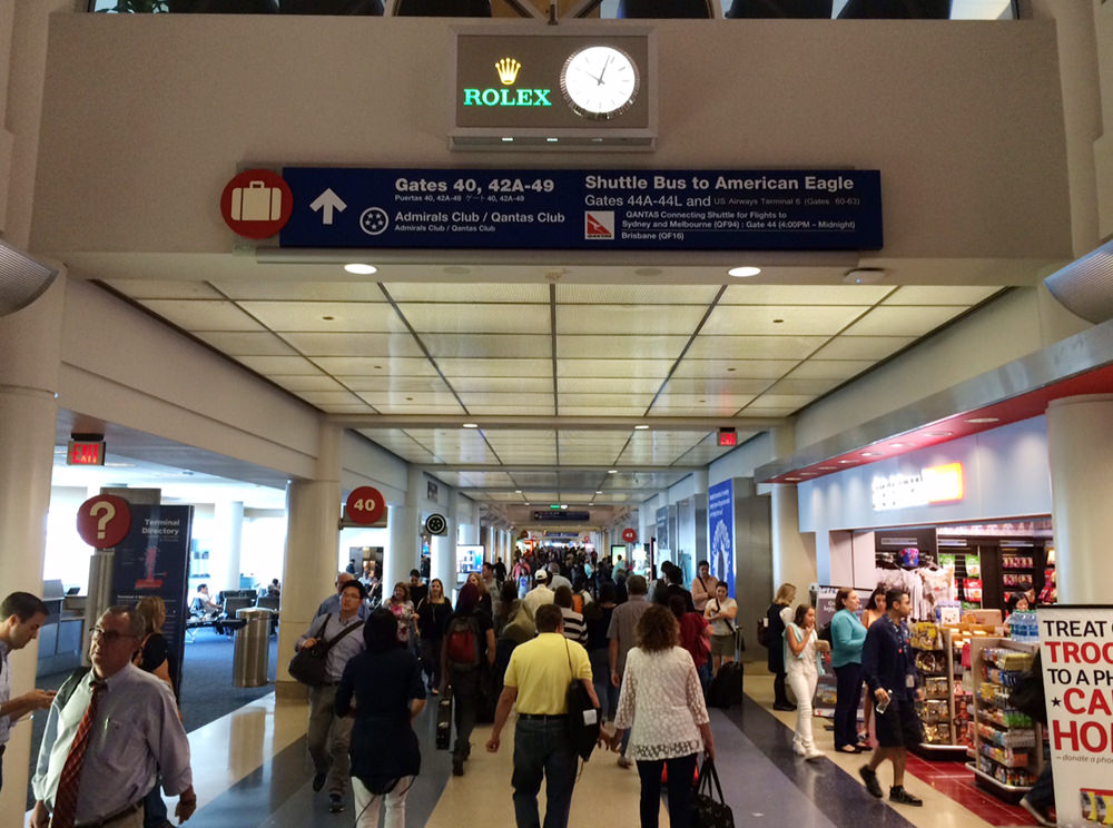 PCHで空港に向かう。そしてセンチュリー・ブルバードへ。レンタカーの返却を無事済ませ、シャトルバスでアメリカンエアのチェックインカウンターまで送ってもらう。
