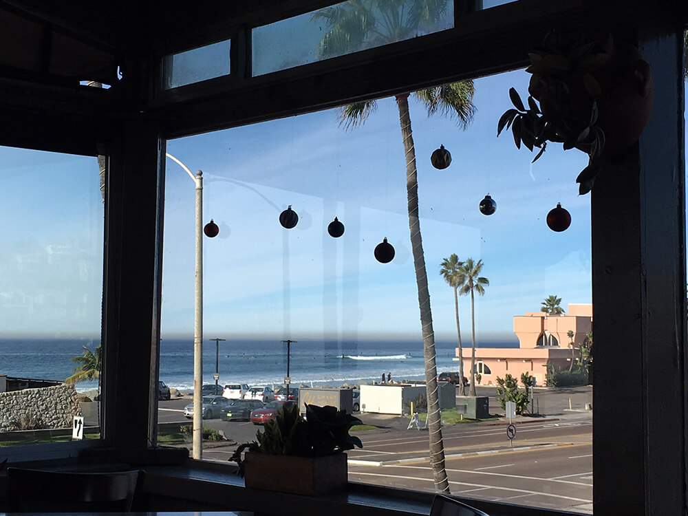 Philオススメの店はCardiff By The Seaの波が見えるオーシャンビューだった。